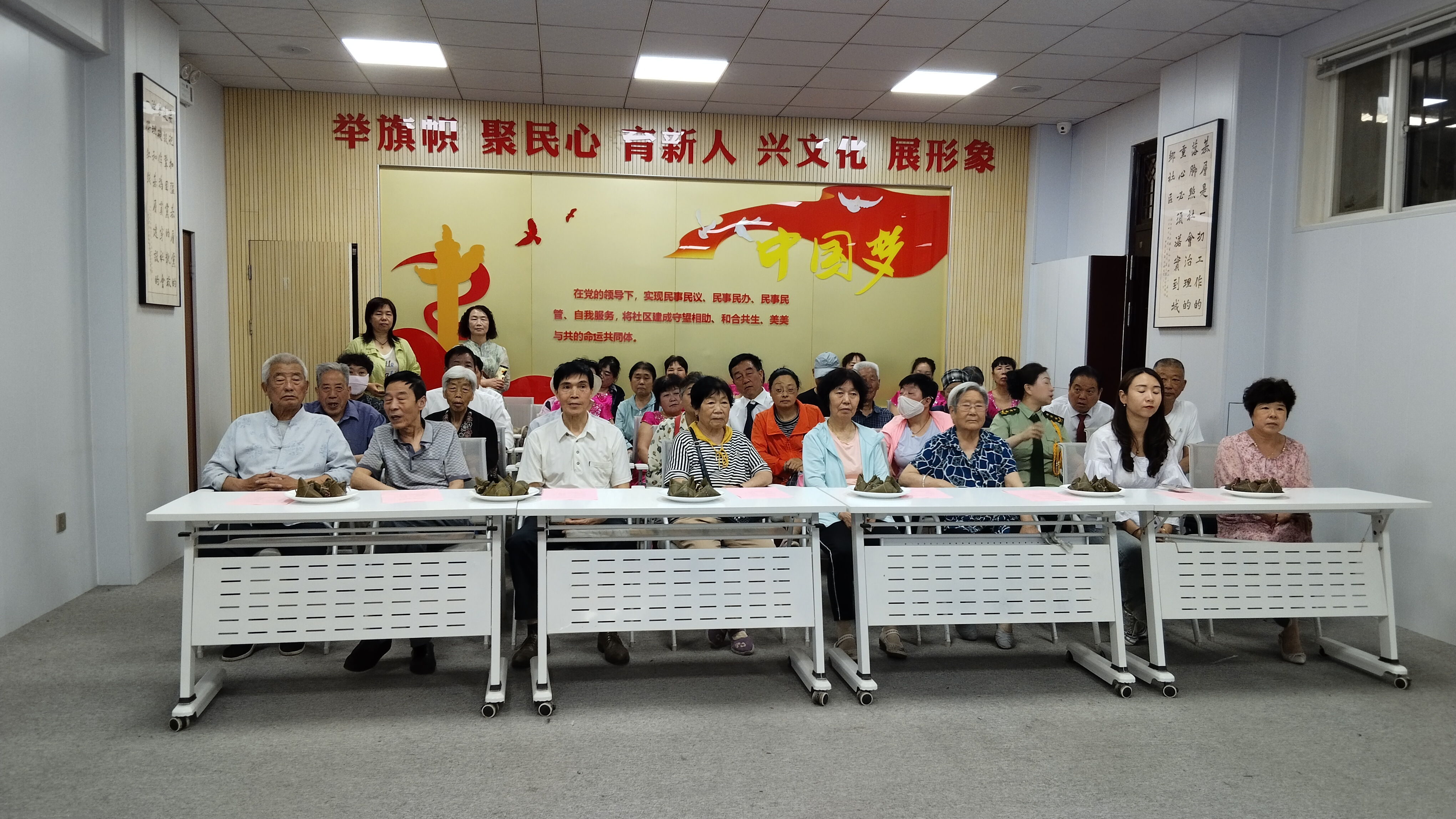 活动中,还穿插了“包粽子”环节,西安银行铜川王益支行、铜川市职业病防治院、社区志愿者、居民共同参与包粽子活动。志愿者们按照自己的手法包出一个个形态各异却都饱含祝福的粽子。大家一边包粽子,一边分享着自己过往生活中的趣事和回忆,欢声笑语不断。
