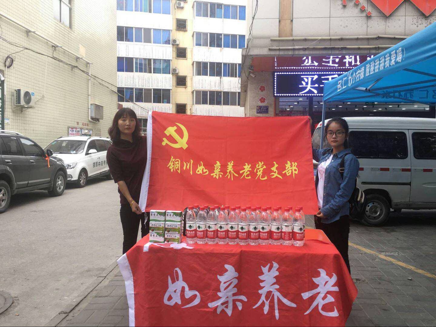 如亲居家养老服务中心党支部在矿务局一中考生提供免费饮用水。