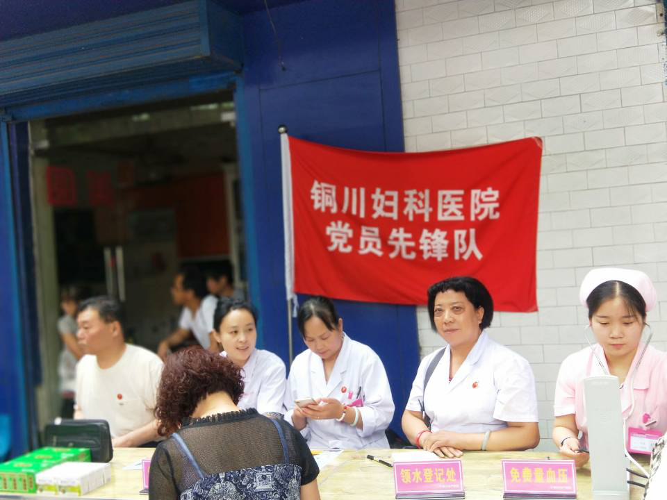 铜川妇产医院党支部在市二中考点为考生免费发放饮用水、抽纸,为有需要的考生及群众免费提供测量血压,为需要的考生及群众免费提供救心丸、藿香正气水等相关药品。