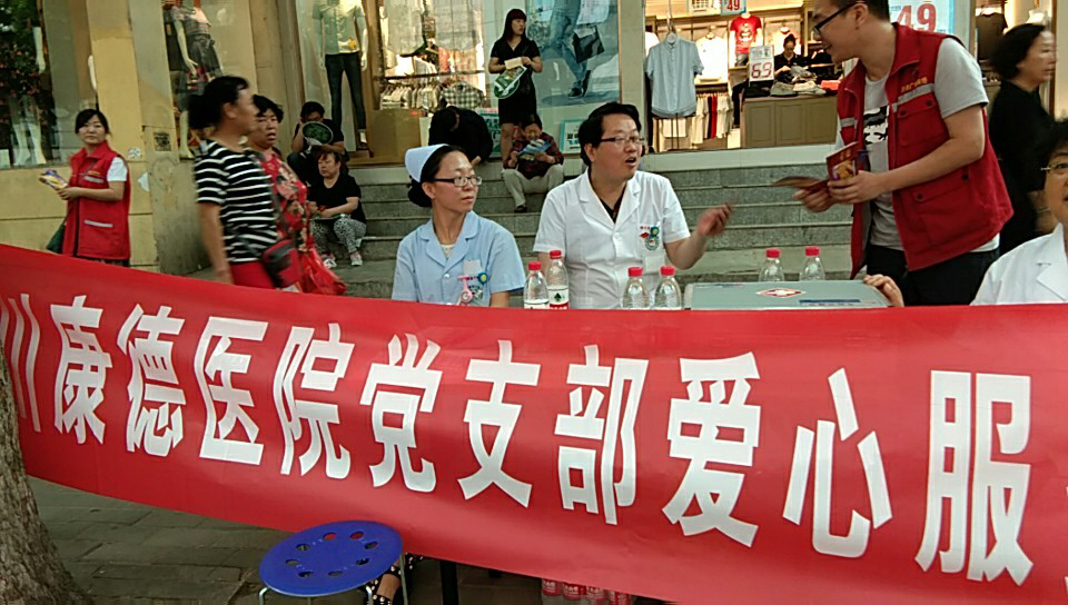 铜川康德医院党支部在局一中考点为有需要的考生提供饮用水,凉扇。为有需要的考生及家长测量血压,提供清凉油、风油精、高糖、云南白药、速效救心丸等急救药品和应急医疗救助服务。