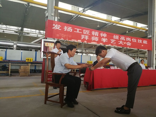 为了更好地发挥公司技术和业务骨干的“传、帮、带”作用,迅速提升公司员工整体素质,增强企业核心竞争力,陕西火凤凰艺术陶瓷有限责任公司党支部经过精心策划和认真准备,于2018年7月31日,隆重举行了具有传统意义的“弘扬工匠精神 提高岗位技能”主题拜师学艺活动启动仪式。