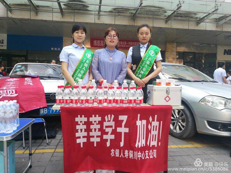 王益区“小个专”党群服务中心、王益区个体私营企业协会党支部联合其会员单位,陕西鑫远大药房医药连锁有限公司、农银人寿保险铜川中心支公司,职工放弃节假日,提前积极筹备,在局一中考点门前设立了服务站,为高考学子免费提供了消暑饮品和应急医药品。