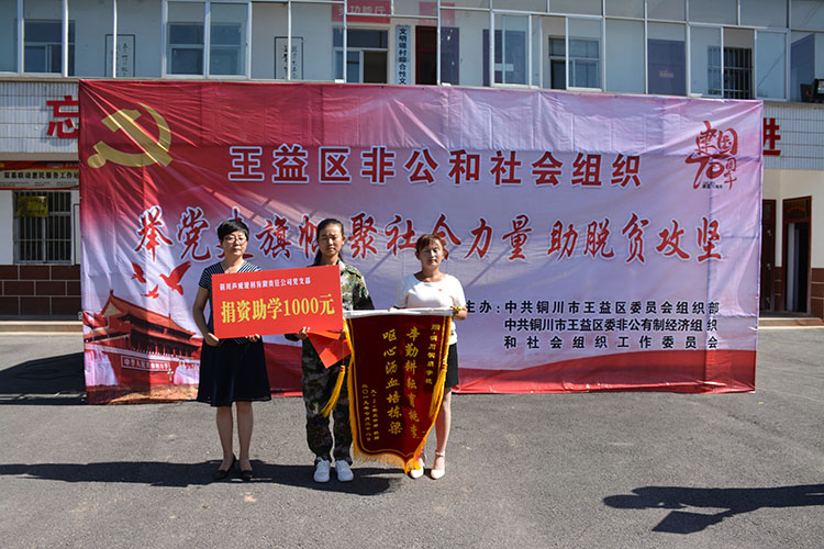 此次活动以“举党建旗帜 聚社会力量 助脱贫攻坚”为主题,旨在通过党建引领、整合资源、凝聚力量,更深入更有效地助力全区脱贫攻坚。当天上午,个体私营企业协会党支部、铜川市乾顺工贸有限责任公司党支部、陕西火凤凰艺术陶瓷有限责任公司党支部、铜川声威建材有限责任公司党支部为4名贫困学生现场捐资助助学,秦安现代农业投资有限责任公司党支部为文明塬村爱心超市捐献物资,同时,成立了爱心义诊、家政服务、送教送学、志愿服务四个小分队并现场授旗,仪式结束后,爱心义诊小分队为文明塬村村民开展义诊。其他小分队赴贫困村开展活动。