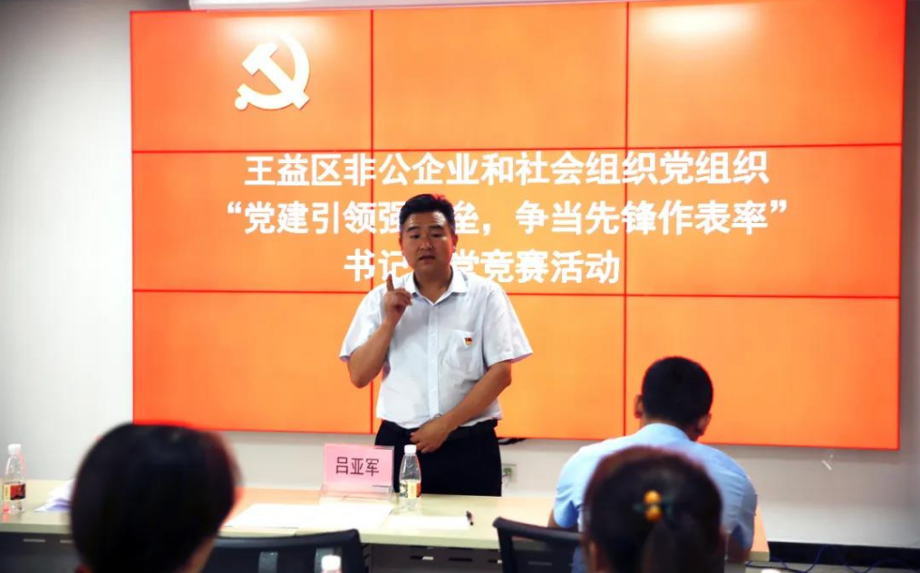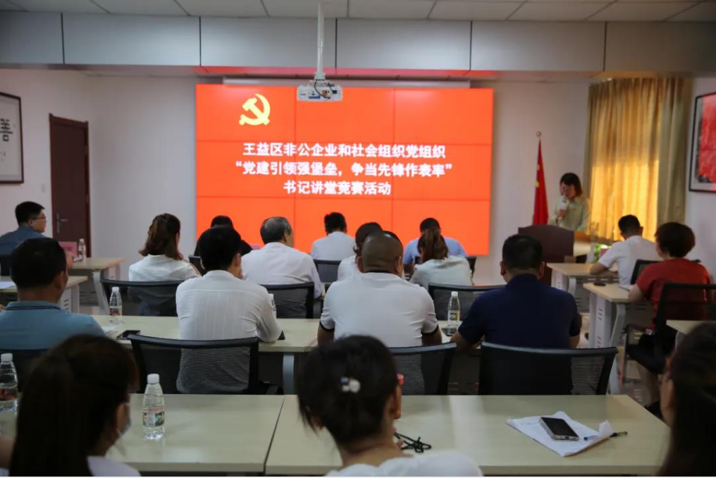 为切实提升非公企业和社会组织党建工作,着力打造一支素质好、业务精、能力强的党组织书记队伍,7月7日,王益区委非公和社会组织工委组织开展“党建引领强堡垒,争当先锋作表率”书记讲堂竞赛活动。区市场监督管理局非公企业党委副书记王长川、红旗街街道党委副书记杨方刚、区文学艺术界联合会专职副主席、秘书长张文联应邀参加活动并担任评委。区委组织部副部长、区委非公和社会组织工委书记吕亚军、区委组织部二级主任科员梁小平、区委非公和社会组织工委副书记左程娟、全区三星级以上党组织书记和部分新建党组织书记、党员代表共30余人参加了本次竞赛活动。