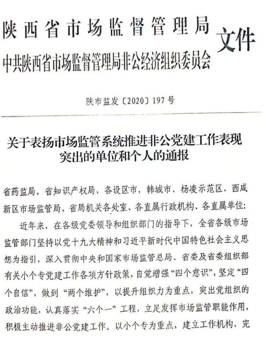 喜报:王益区市场监管局非公企业党委受到省级通报表扬