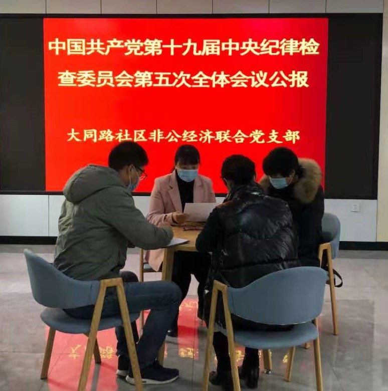 大同路社区非公经济联合党支部积极传达学习《中国共产党第十九届中央纪律检查委员会第五次全体会议公报》