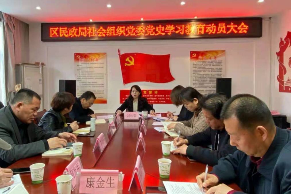 会议深入学习了习近平总书记在党史学习教育动员大会上的重要讲话和全省、全市、全区党史学习教育动员大会精神,宣读了区民政局社会组织党委《开展党史学习教育实施方案》,对社会组织党史学习教育工作进行了安排部署。