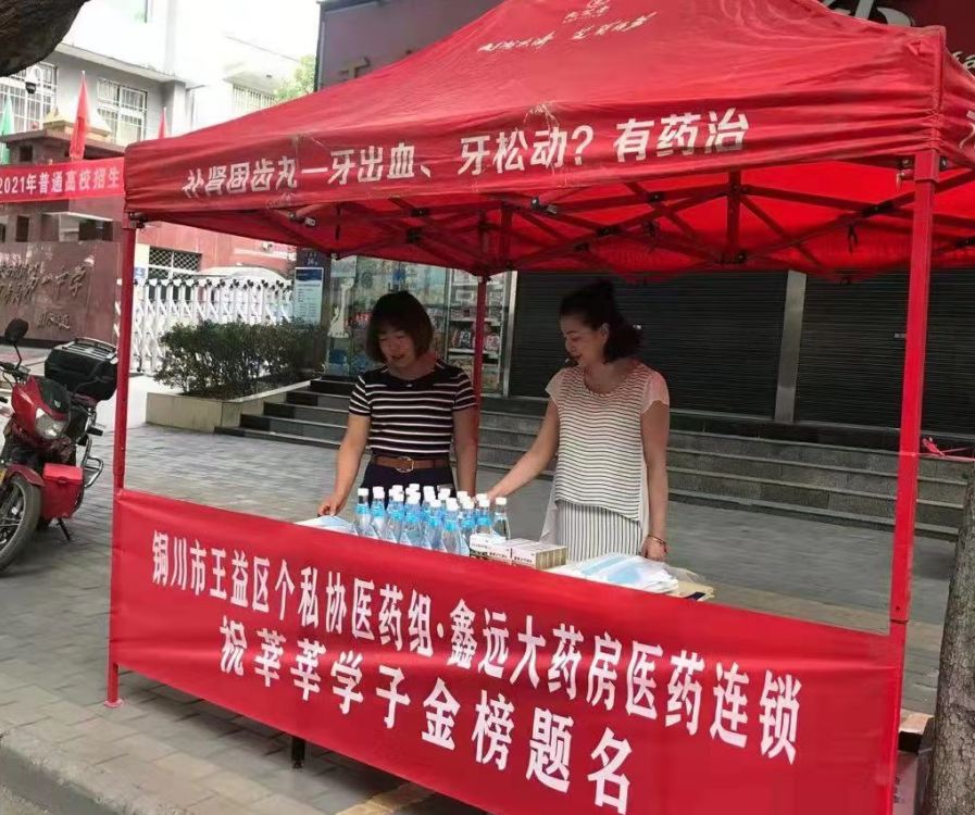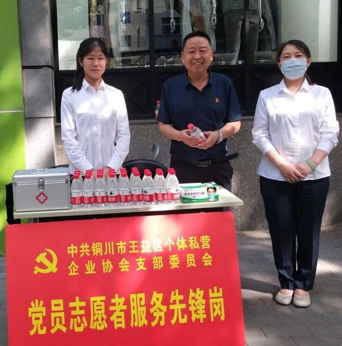 王益区个体私营企业协会党支部组织党员成立爱心志愿服务队,连续四年在矿务局第一中学考点门前设立服务站,为参加高考的考生、考生家长,以及参与本次高考护考工作相关人员送去免费的矿泉水、消毒酒精、医用口罩等用品,助力参加本次高考的莘莘学子金榜题名,旗开得胜。