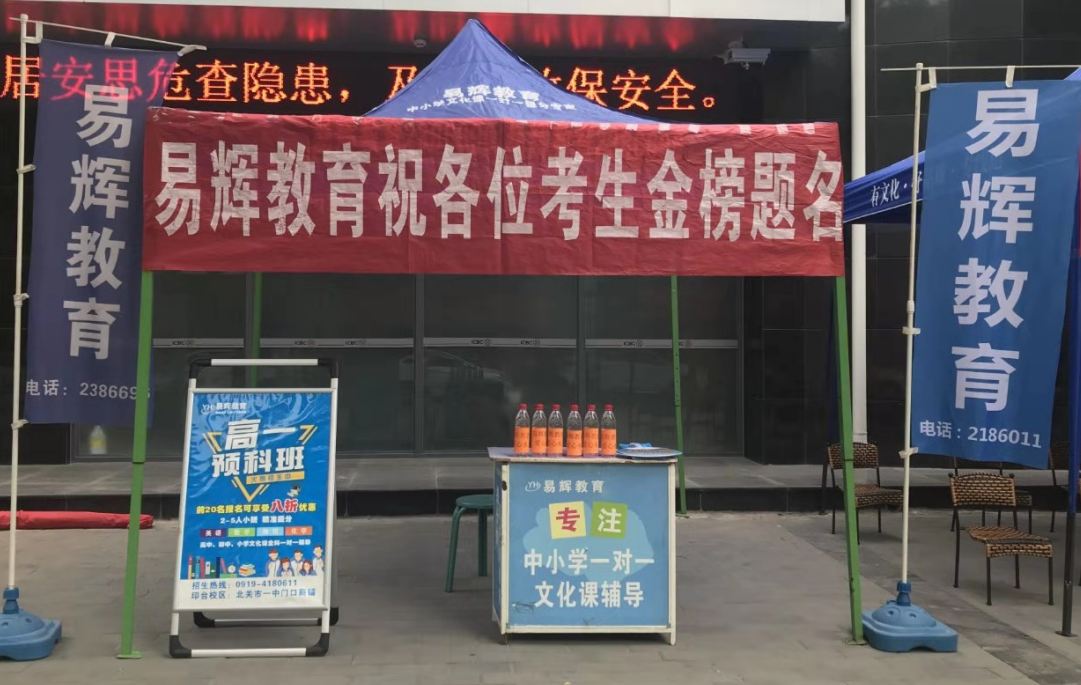 王益易辉教育培训学校党支部组织党员、教师职工在铜川市各个考点设立考生服务区5个,专门提供饮品、应急小药箱等,为因炎热、紧张而引发头晕、中暑等病情的考生及时提供救助,助力广大学子们取得高考开门红。