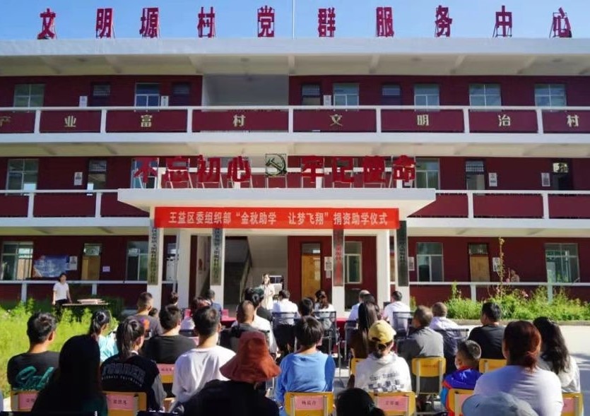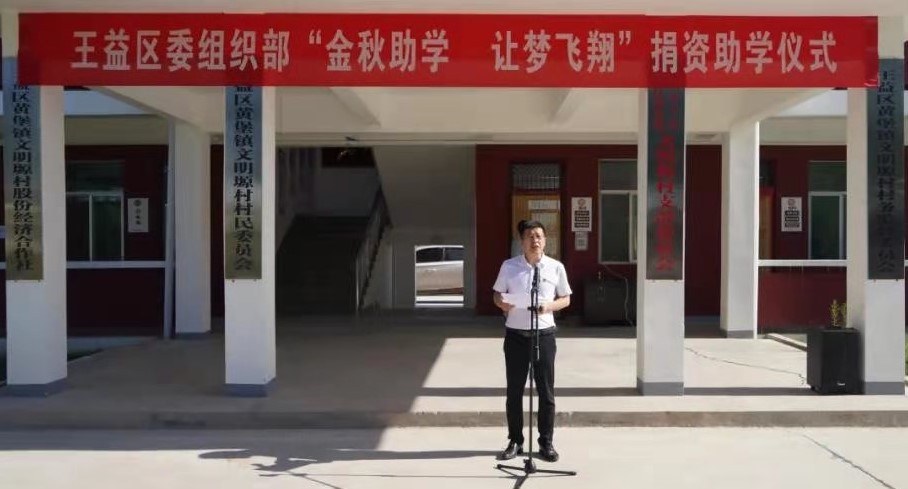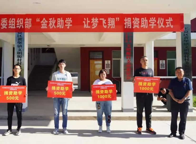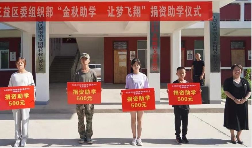 8月27日,王益区委组织“金秋助学 让梦飞翔”捐资助学活动仪式在黄堡镇文明塬村举行,四个非公企业和社会组织党组织为19名家庭困难学生捐赠助学款共计1.8万元。