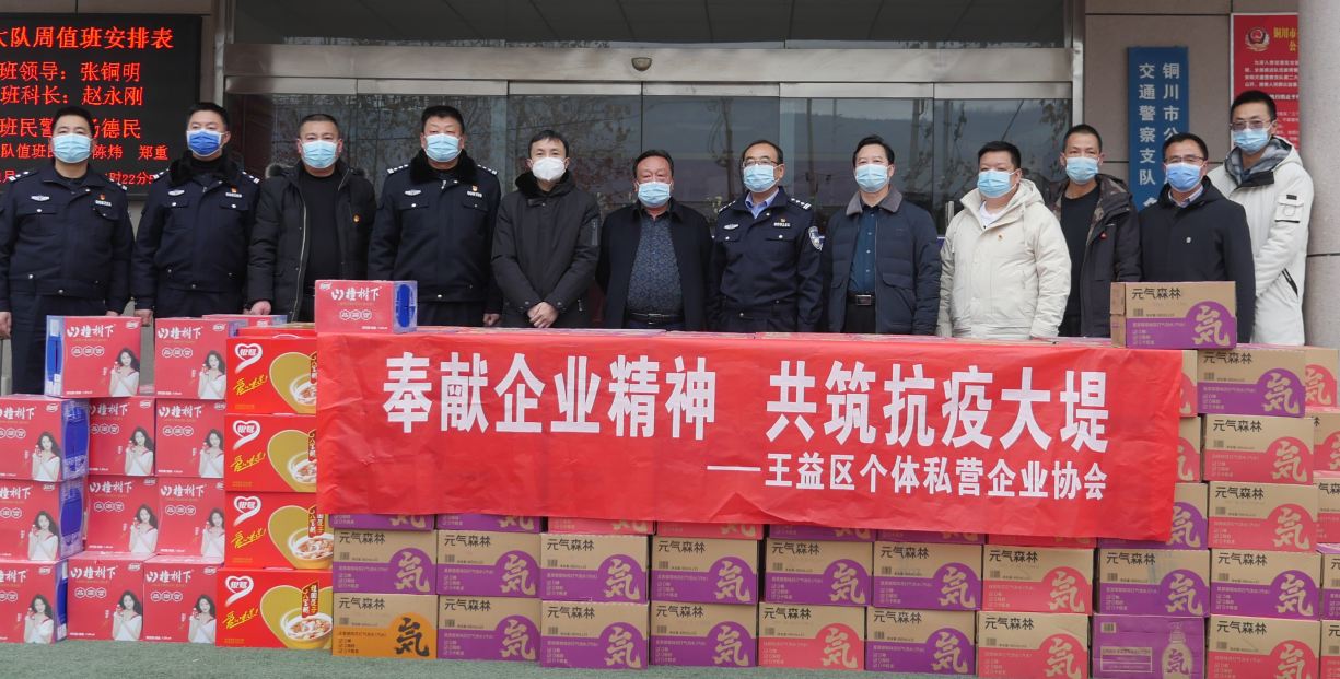 热心捐赠,同舟共济。王益区个体私营企业协会党支部上下一心、众志成城、“疫”无反顾,努力为疫情防控担当责任,奉献力量。在党支部书记的带领和号召下,协会会员积极捐赠物资,为公安、交警、医护、镇(街道)、村(社区)等一线工作者捐赠了一大批爱心物资,其中包括医用口罩、洗手液、84消毒液、矿泉水、方便面等物资,总价值20余万元,为一线工作人员防疫工作保驾护航,提供了物质保障。
