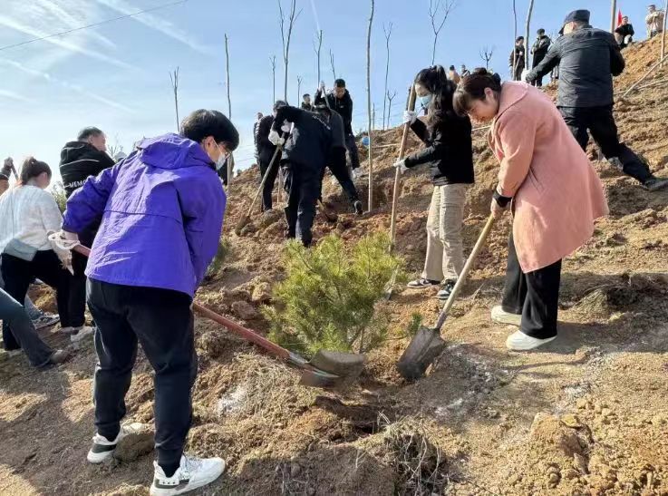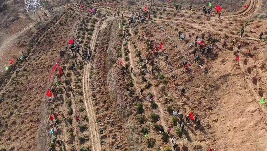 与此同时,在梁家塬村、老庙沟、桃园红矸山等多处荒坡、边角空地的植树现场,也呈现一片热火朝天的忙碌景象,来自黄堡镇和各街道办的干部群众扬锨挥镐植下一片新绿。