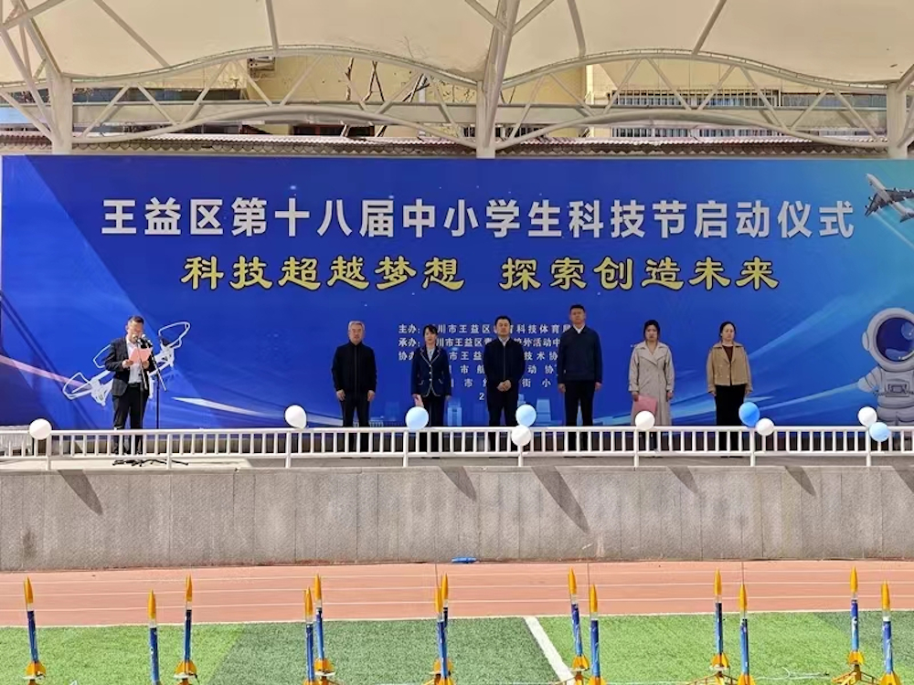 启动仪式上,通报了2023年王益区中小学生参加各级科技类比赛获奖情况,为第十七届中小学生科技节“优秀组织单位”颁发奖牌,对科技节活动进行安排部署。铜川市航空运动协会受邀到学校开展航空飞行表演,与会人员观摩了我区参加国家、省市人工智能大赛获奖学生的展示表演。